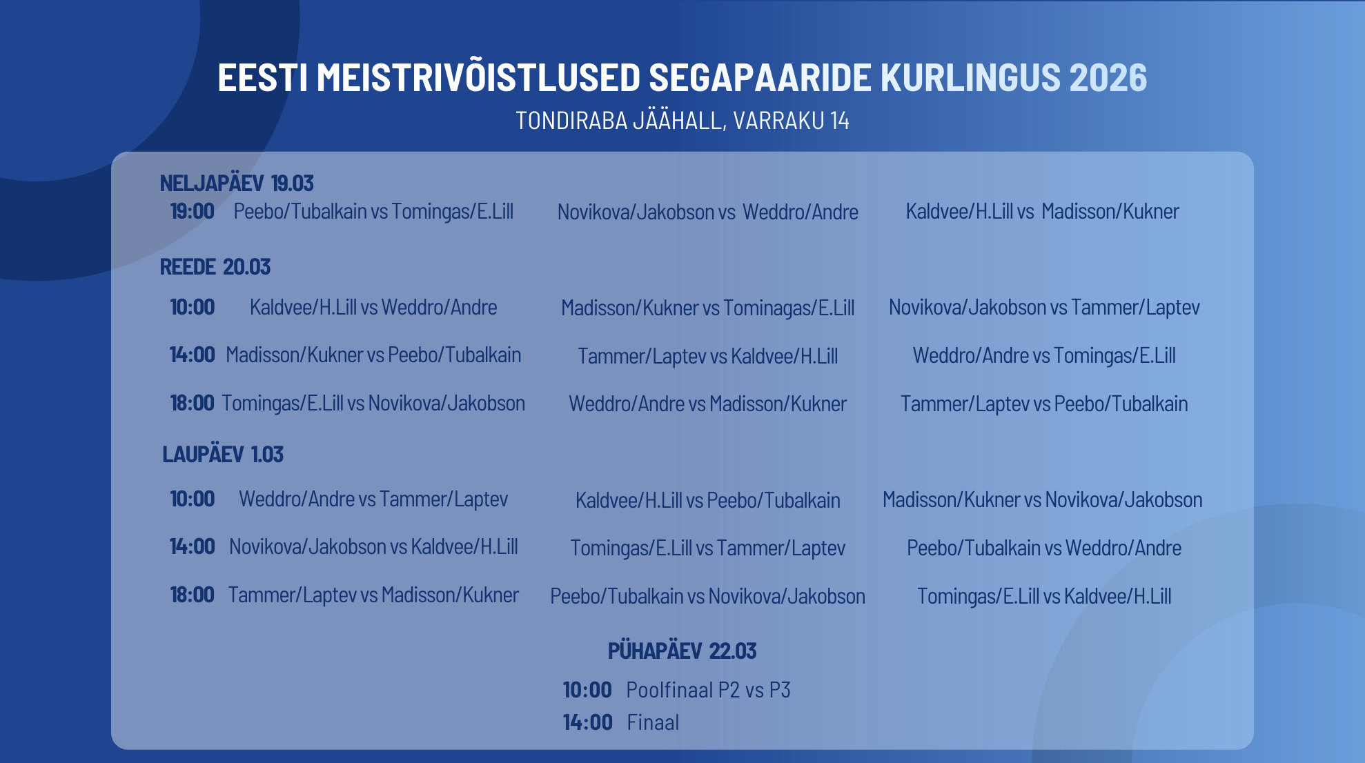 Kõik mängud kantakse üle ka Curling Tallinna YouTube’i kanalil: